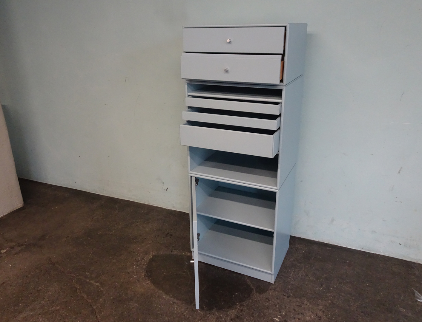 Spezieles: mit 1 Drehtüre2, Fächern und 5 Schubladen