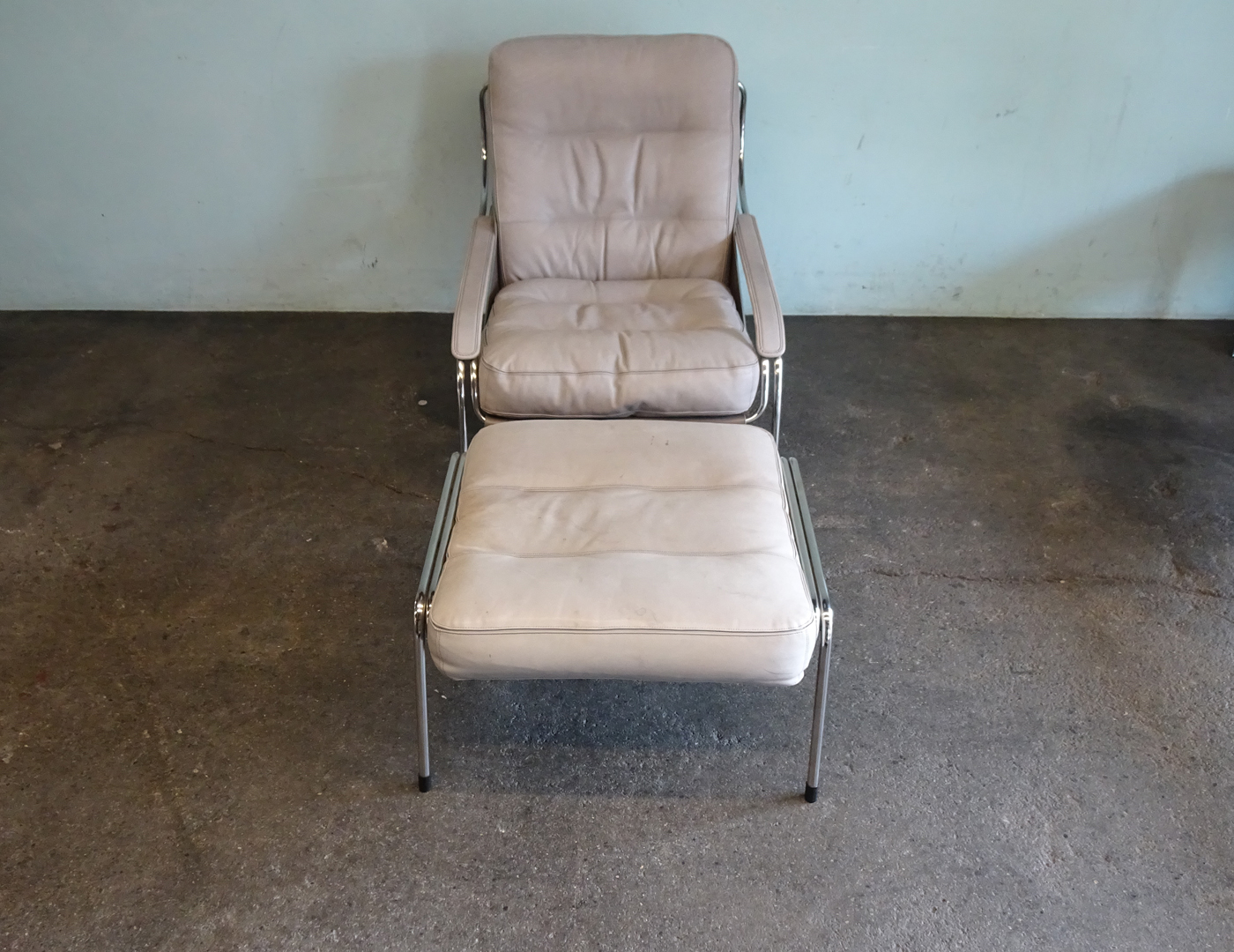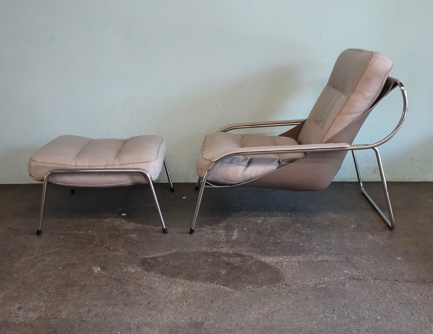 Material: Gestell Edelstahl, Kernleder, Leder, Federn